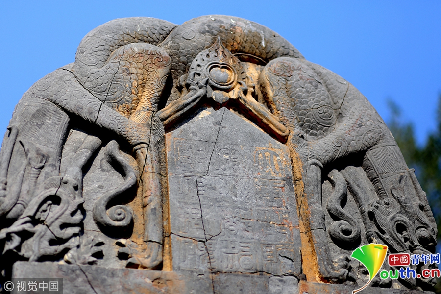 中國(guó)青年網(wǎng)北京10月21日電 近日,鄭州市惠濟(jì)區(qū)古滎鎮(zhèn)嶺軍峪村已經(jīng)因?yàn)槌鞘械陌l(fā)展被拆遷了,村民們住在安置房里等待著新房的建成,而在嶺軍峪村南約150米的田地里,有一塊在2009年文物普查時(shí)被發(fā)現(xiàn)的唐代石碑,在鄭州市發(fā)現(xiàn)唐代的碑刻是比較罕見(jiàn)的。 圖片來(lái)源:視覺(jué)中國(guó)