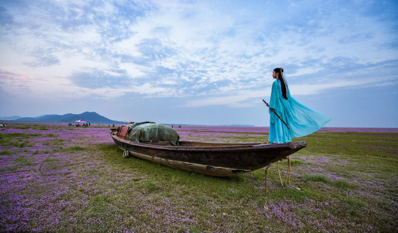 鄱陽湖蓼子花海美景醉游人