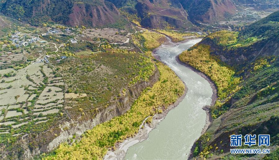 這是10月21日在西藏米林縣派鎮(zhèn)達(dá)林村拍攝的雅魯藏布江(無(wú)人機(jī)拍攝)。
