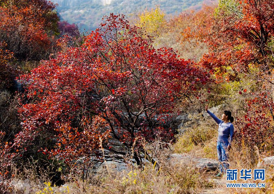 10月24日,游客在河北省武安市賀進(jìn)鎮(zhèn)后臨河村觀賞紅葉。 金秋時(shí)節(jié),位于太行山區(qū)的河北省武安市賀進(jìn)鎮(zhèn)后臨河村的紅葉進(jìn)入觀賞佳期。 新華社記者 王曉 攝