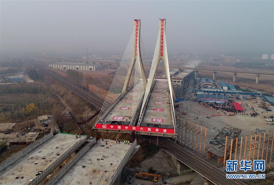 河北唐山:斜拉轉(zhuǎn)體橋轉(zhuǎn)體成功