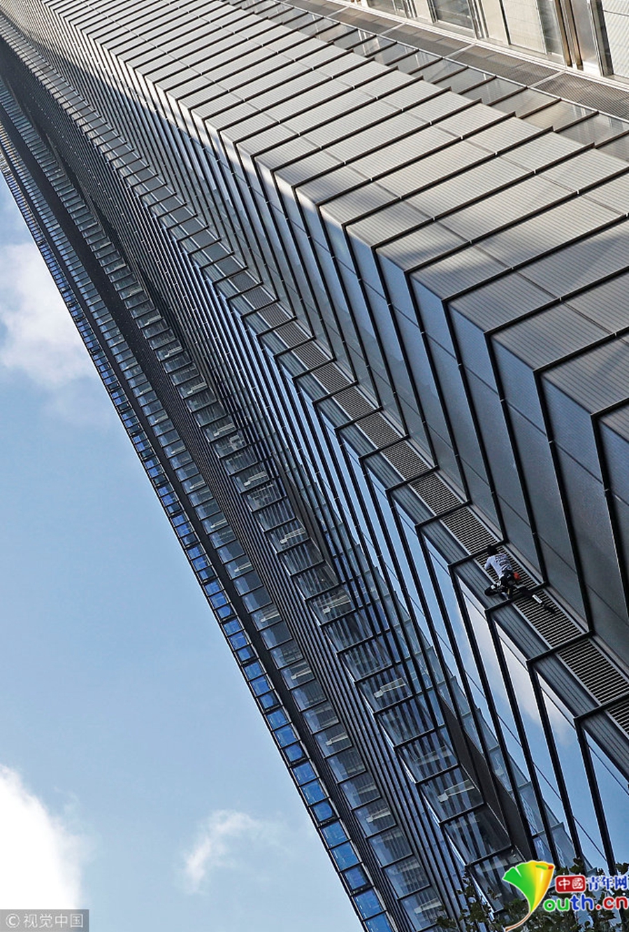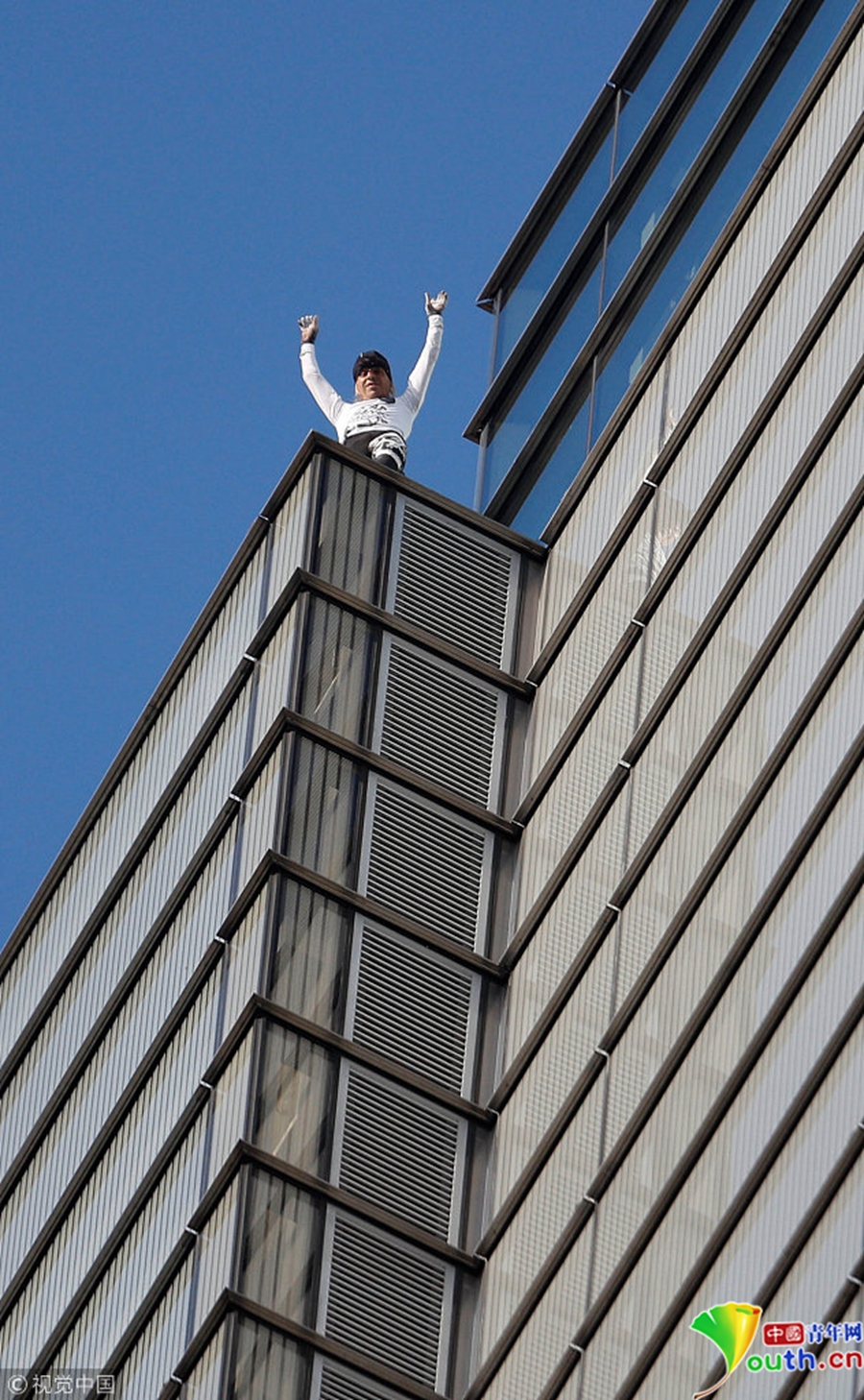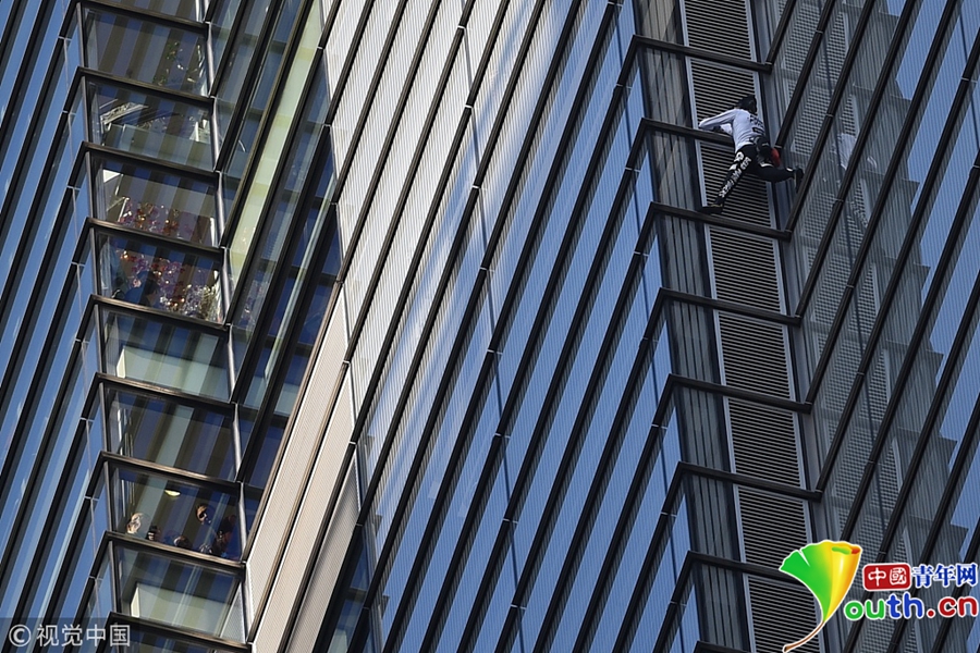 “蜘蛛人”阿蘭·羅伯特正在攀登赫倫大廈。