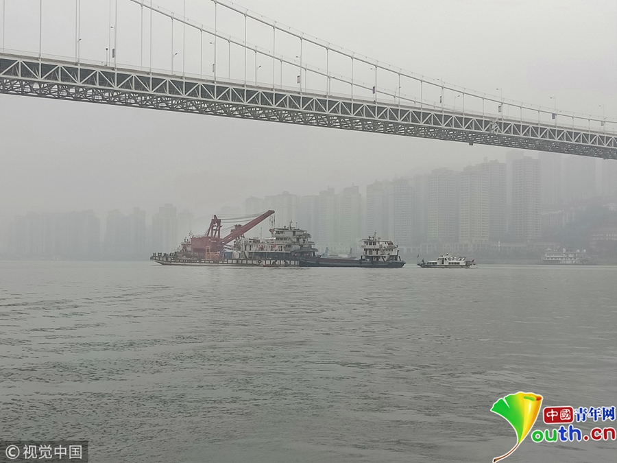 重慶萬州墜江公交車打撈深潛設(shè)備到位 潛水員正下潛勘測
