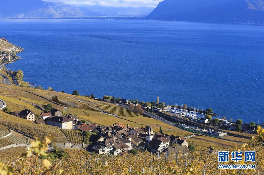 這是10月30日在瑞士西部拉沃地區(qū)拍攝的梯田式葡萄園秋景。
