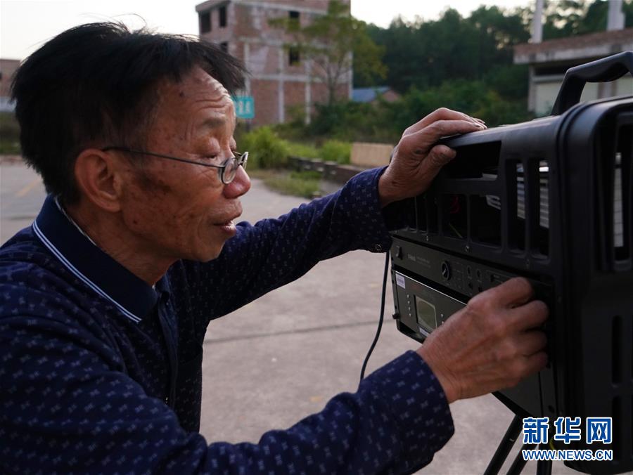 10月30日,曾紀連在寬田鄉(xiāng)山下村調(diào)試放映設備,準備為村民們放映電影。