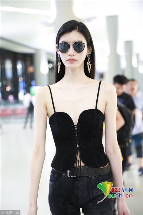 2018年7月25日,上海,奚夢(mèng)瑤現(xiàn)身機(jī)場(chǎng),她穿吊帶馬甲配過膝長(zhǎng)靴,頻撩發(fā)似女特工。