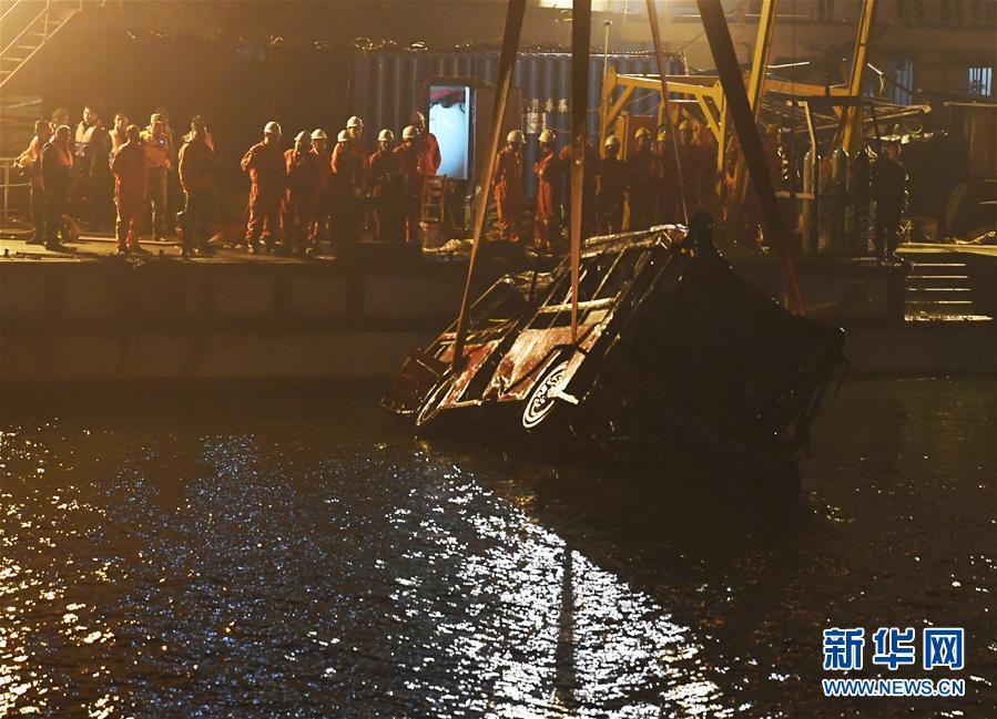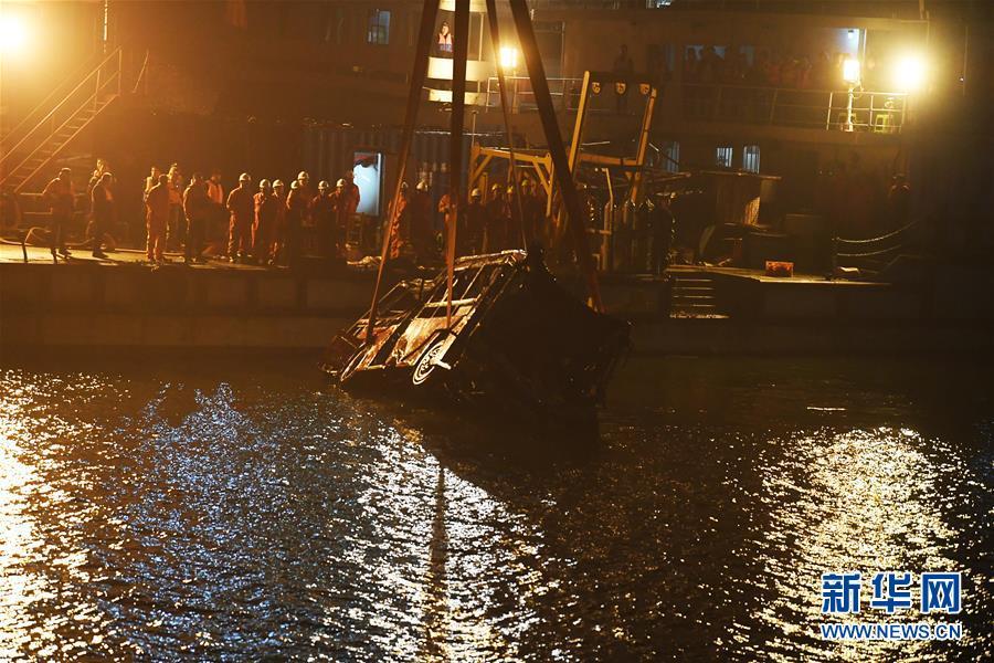2018年10月31日消息,重慶。10月31日23時28分,重慶萬州長江二橋墜江公交車被打撈出水。