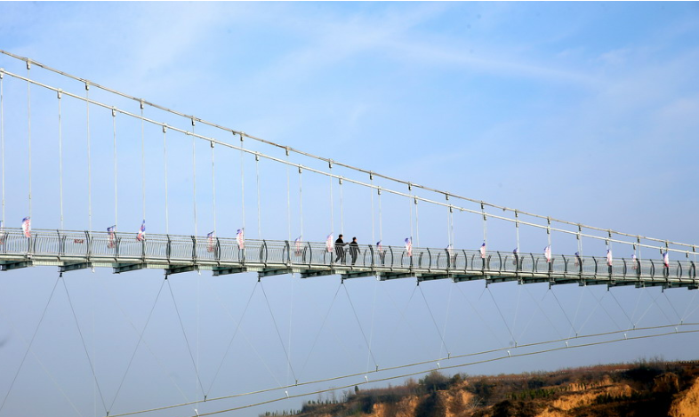 實(shí)拍地坑院景區(qū)玻璃天橋 全長318 ...