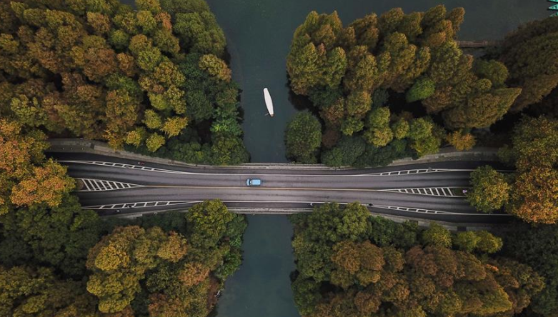 深秋時(shí)節(jié),山東濟(jì)南楔子山山脊兩邊種植的植被形成“一山雙色”景觀,令人稱奇。