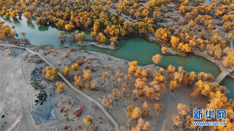 10月中旬以來,新疆天山以南的塔里木河流域胡楊葉片由綠變黃,如同披上了金色外套。 2000年起,塔里木河19次向下游生態(tài)輸水,累計(jì)下泄生態(tài)水76.2億立方米。多年的持續(xù)輸水結(jié)束了塔里木河下游河道連續(xù)斷流30年的歷史,緩解了流域生態(tài)退化的被動(dòng)局面,塔里木河下游動(dòng)植物物種顯著增加、水環(huán)境得到有效改善。