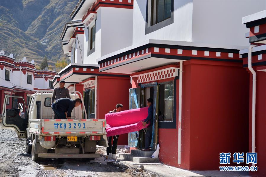 在隴南市武都區(qū)“新坪埡”,村民將山上搬下來(lái)的物品搬進(jìn)新房(10月31日攝)。新華社記者 范培珅攝