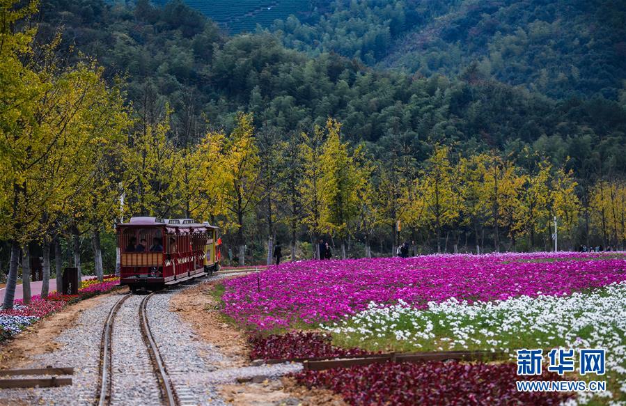 11月2日,金黃的銀杏林與“五彩花?!睒?gòu)成了美麗秋色。 新華社記者 徐昱 攝