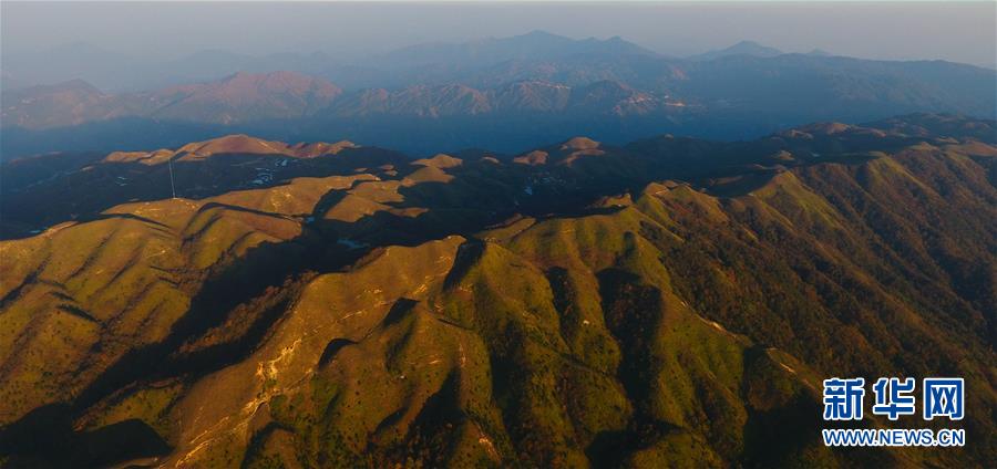 夕陽下的摩天嶺草場(11月2日無人機(jī)拍攝)。金秋時節(jié),廣西融水苗族自治縣桿洞鄉(xiāng)堯告村的摩天嶺草場天高云淡,景色迷人。新華社記者周華攝
