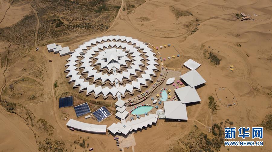 位于內(nèi)蒙古杭錦旗的七星湖沙漠酒店(8月1日無人機(jī)拍攝)。 新華社記者邢廣利攝