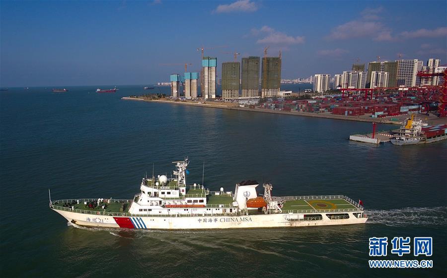 11月3日,“海巡21”輪駛出港口。 當日,隨著“海巡21”輪緩緩駛離??诤J卤O(jiān)管基地碼頭,由瓊桂粵海事部門共同開展的瓊州海峽、北部灣及環(huán)海南島水域跨轄區(qū)聯(lián)合巡航執(zhí)法活動揭開序幕。 新華社記者楊冠宇攝