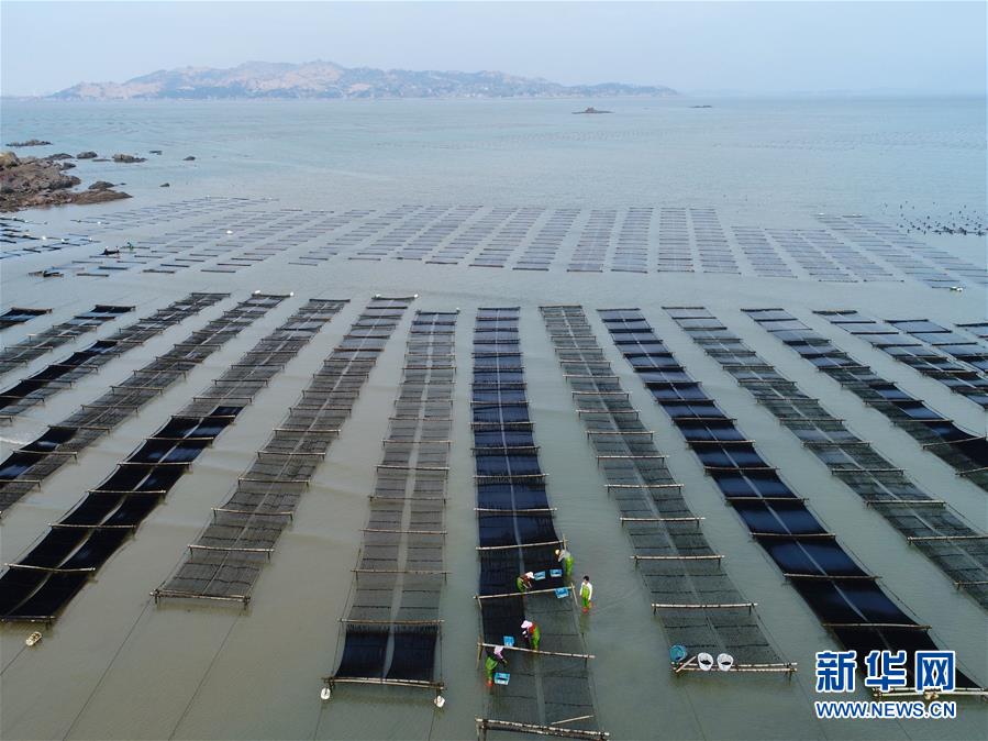 10月24日,福建莆田蔣山村村民在收獲紫菜?! ⌒氯A社記者張國俊 攝