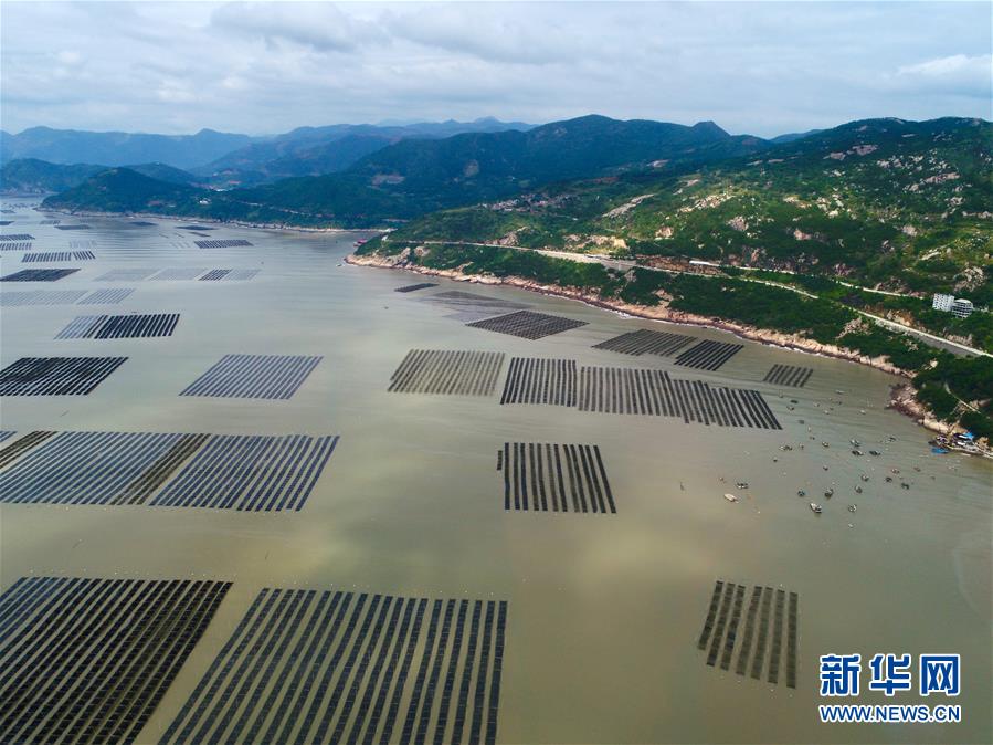 這是11月4日無人機(jī)拍攝的霞浦縣三沙鎮(zhèn)的紫菜種植區(qū)。 近日,福建省霞浦縣沿海6萬畝紫菜迎來收獲季節(jié),漁民們出海收獲紫菜,海上田園一派繁忙豐收景象。   新華社記者 姜克紅 攝