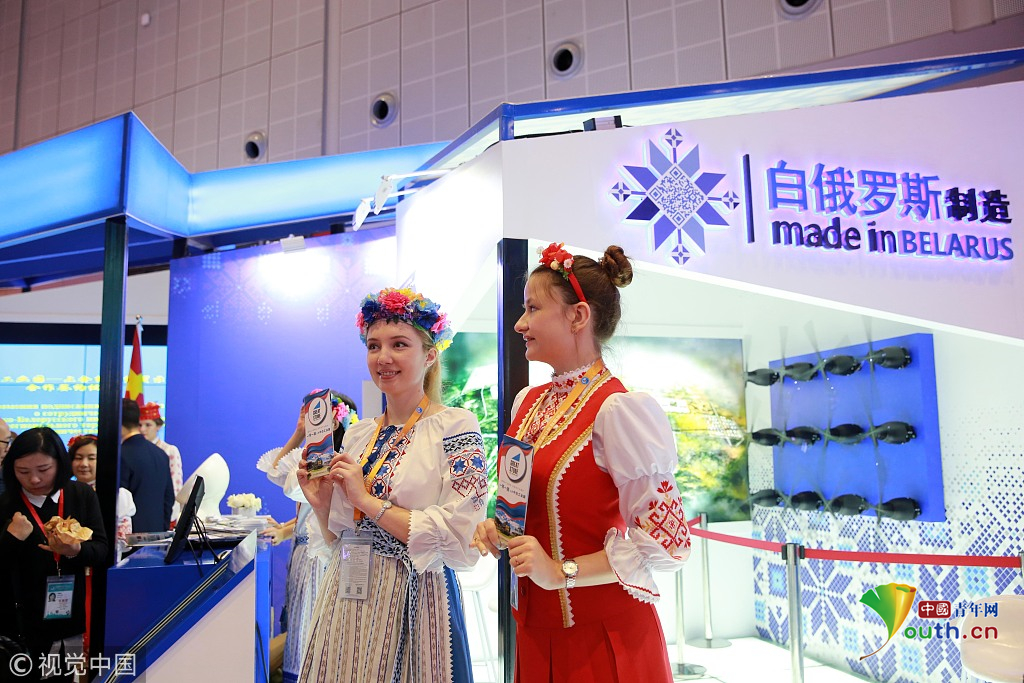 2018年11月6日,上海,首屆中國(guó)國(guó)際進(jìn)口博覽會(huì)國(guó)家展上,共有82個(gè)國(guó)家、3個(gè)國(guó)際組織設(shè)立了71個(gè)展臺(tái)。白俄羅斯館。視覺(jué)中國(guó)