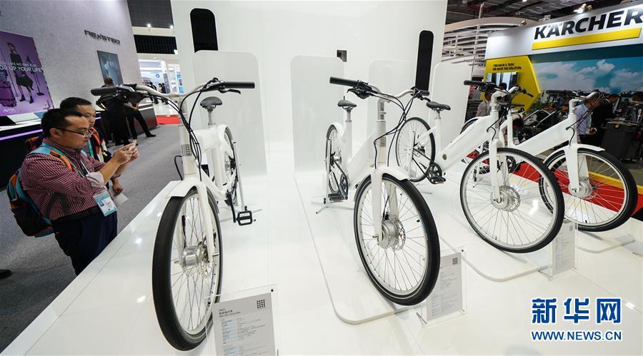 11月6日,觀眾在了解一種碳纖維框架的電動(dòng)自行車(chē)。 新華社記者 王建華 攝