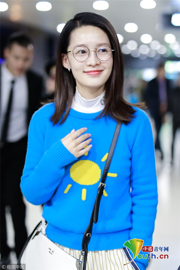 2018年11月8日,上海,李沁現(xiàn)身機場。李沁藍(lán)毛衣清新亮眼白到發(fā)光,通透淡妝凸顯干凈氣質(zhì)美膩動人。