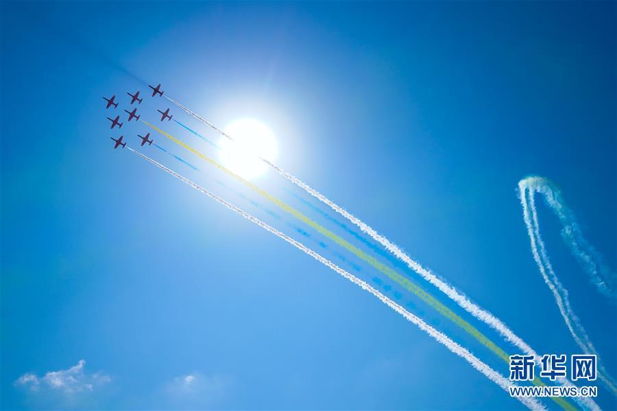 11月6日,中國空軍八一飛行表演隊(duì)在航展現(xiàn)場(chǎng)進(jìn)行飛行表演。當(dāng)日,第十二屆中國國際航空航天博覽會(huì)在珠海開幕。 新華社記者楊光攝