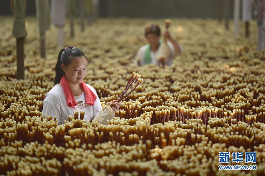 8月22日,河北省沙河市蟬房鄉(xiāng)水磨頭村農(nóng)民在管理種植的靈芝。 近年來(lái),河北省沙河市蟬房鄉(xiāng)水磨頭村采取“合作社+基地+農(nóng)戶”的經(jīng)營(yíng)模式,大力發(fā)展特色靈芝種植,開(kāi)辟出農(nóng)民創(chuàng)收新路徑。目前,水磨頭村已種植各類靈芝8萬(wàn)多株,產(chǎn)品銷往北京、天津、山東等地,帶動(dòng)100余名農(nóng)民人均年增收超5000元。 新華社記者 牟宇 攝