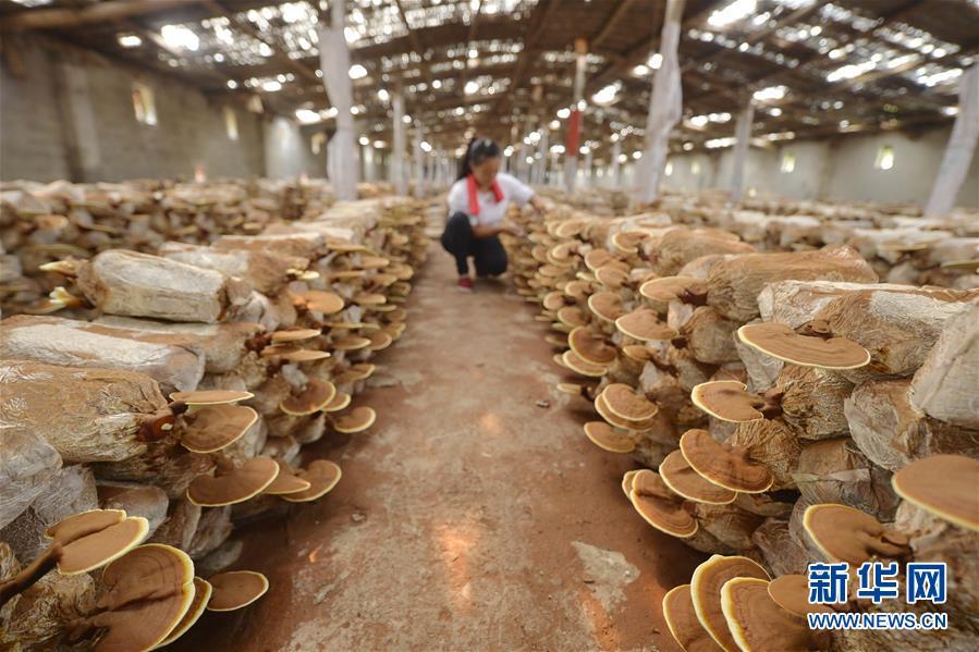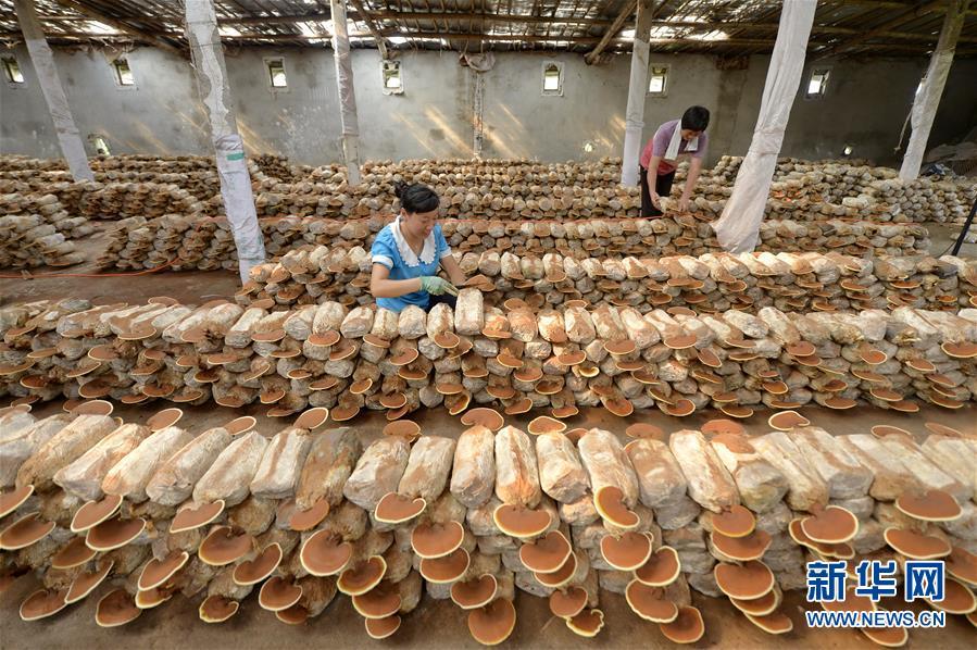 6月20日,廣宗縣大柏社村農(nóng)民在溫室大棚對(duì)靈芝進(jìn)行日常管理。 近年來(lái),河北省廣宗縣大柏社村積極引導(dǎo)農(nóng)民結(jié)合市場(chǎng)需求調(diào)整農(nóng)業(yè)產(chǎn)業(yè)結(jié)構(gòu),采取“公司+合作社+基地+農(nóng)戶”的經(jīng)營(yíng)模式,發(fā)展特色靈芝種植,并開(kāi)發(fā)出靈芝盆景、靈芝孢子粉等相關(guān)衍生產(chǎn)品,開(kāi)辟出一條富農(nóng)創(chuàng)收新路徑。目前,大柏社村靈芝種植面積近百畝,種植各類靈芝5000余株,帶動(dòng)120余名農(nóng)民就業(yè)增收。新華社記者朱旭東攝