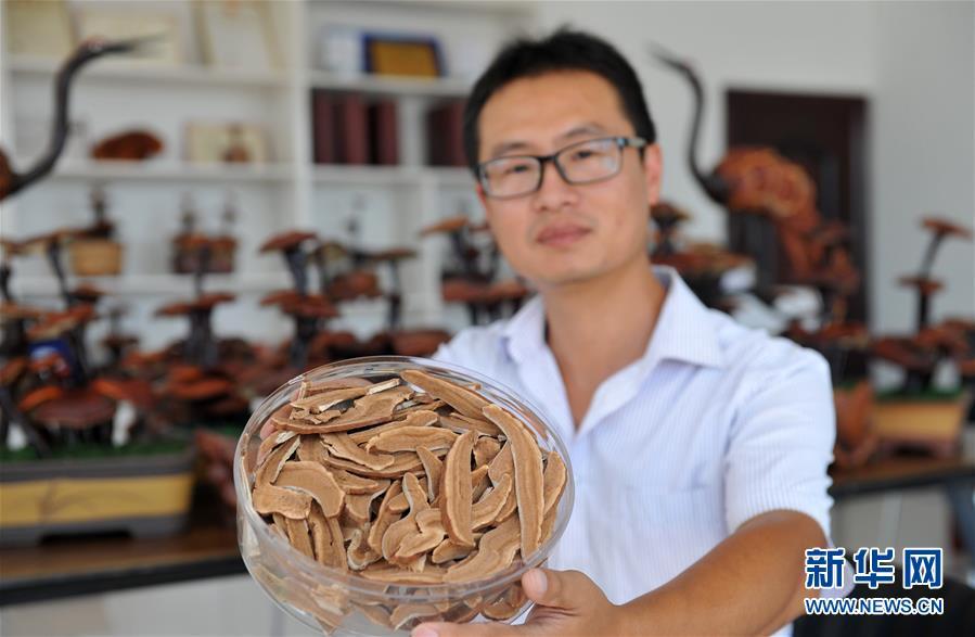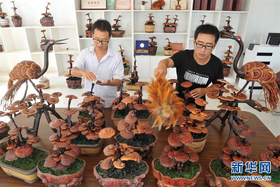 6月20日,廣宗縣大柏社村村民王志恒在展示制作的靈芝盆景。 近年來(lái),河北省廣宗縣大柏社村積極引導(dǎo)農(nóng)民結(jié)合市場(chǎng)需求調(diào)整農(nóng)業(yè)產(chǎn)業(yè)結(jié)構(gòu),采取“公司+合作社+基地+農(nóng)戶”的經(jīng)營(yíng)模式,發(fā)展特色靈芝種植,并開(kāi)發(fā)出靈芝盆景、靈芝孢子粉等相關(guān)衍生產(chǎn)品,開(kāi)辟出一條富農(nóng)創(chuàng)收新路徑。目前,大柏社村靈芝種植面積近百畝,種植各類靈芝5000余株,帶動(dòng)120余名農(nóng)民就業(yè)增收。新華社記者朱旭東攝