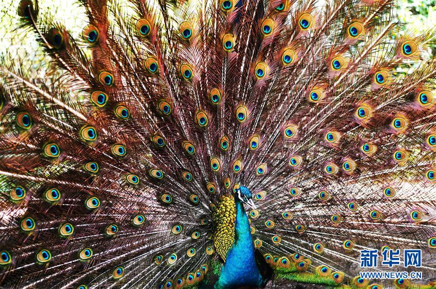 5月16日,在重慶市銅梁區(qū)永嘉鎮(zhèn)高龍村藍(lán)孔雀養(yǎng)殖場(chǎng)內(nèi),一只藍(lán)孔雀開(kāi)屏。 新華社記者 王全超 攝 |