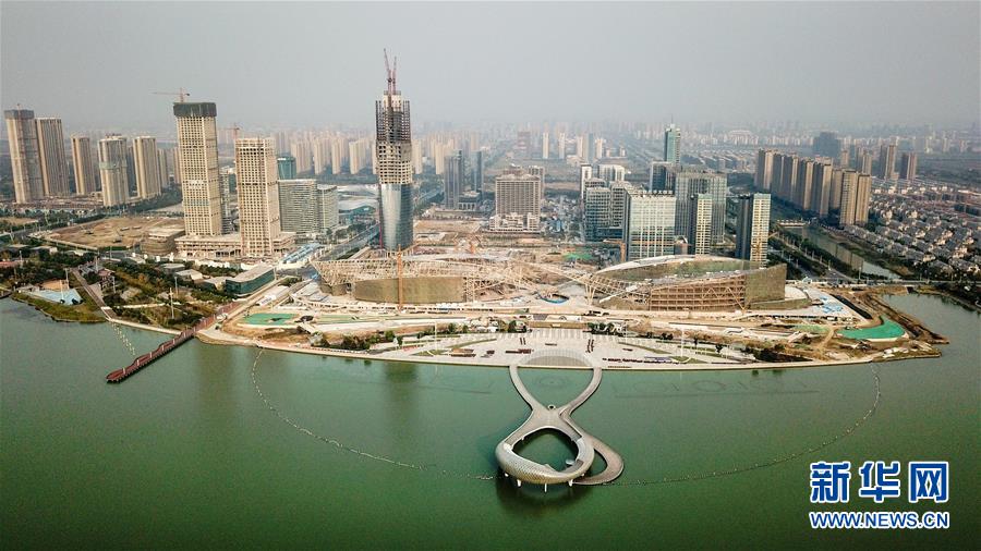 蘇州市吳江區(qū)正在建設(shè)中的太湖新城(10月30日無(wú)人機(jī)拍攝)。 新華社記者 李博 攝