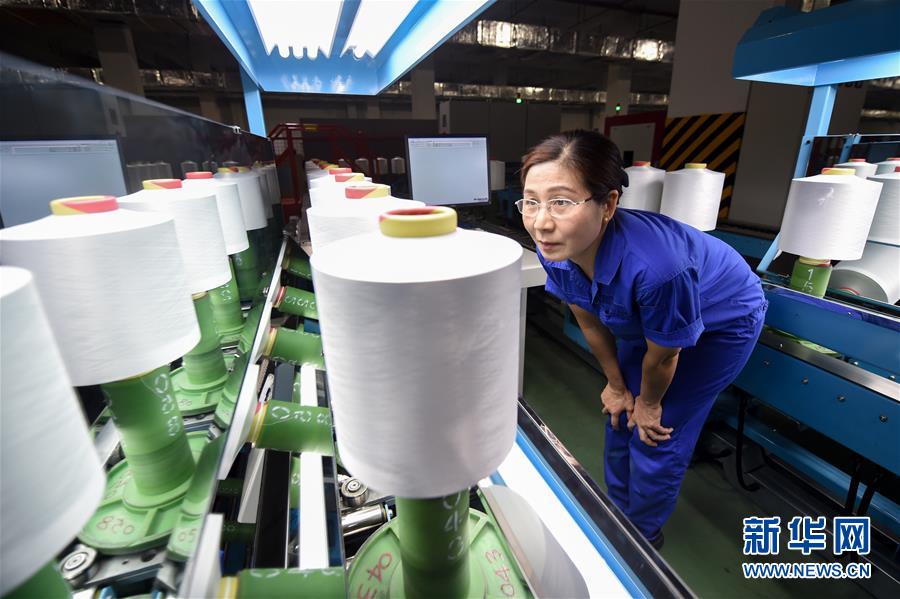 蘇州市吳江區(qū)盛澤鎮(zhèn)一家絲綢公司的工人在車間進(jìn)行絡(luò)絲作業(yè)(2017年5月20日攝)。 新華社記者 李響 攝