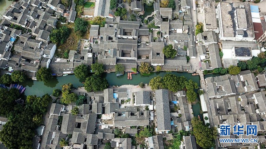 蘇州市吳江區(qū)七都鎮(zhèn)開弦弓村村貌(10月23日無(wú)人機(jī)拍攝)。近年來(lái),開弦弓村形成了化纖紡織、針織衫編織和水產(chǎn)養(yǎng)殖三大產(chǎn)業(yè),2017年村集體收入268萬(wàn)元,農(nóng)民人均可支配收入3萬(wàn)多元。