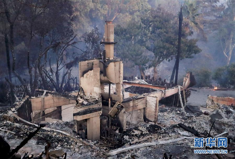 這是11月10日在美國(guó)加利福尼亞州馬里布市拍攝的一處被燒毀的廢墟。連日來,美國(guó)加利福尼亞州野火肆虐。 新華社記者李穎攝