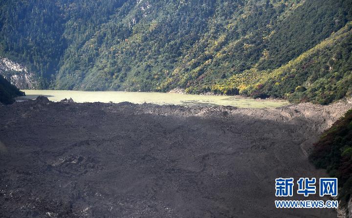 雅魯藏布江上的堰塞湖和堰塞體(10月18日攝)?!⌒氯A社記者 覺(jué)果攝