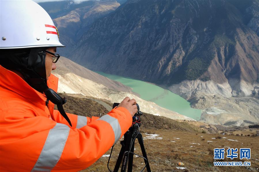 堰塞湖水持續(xù)上漲(10月18日攝)。  新華社記者 普布扎西攝