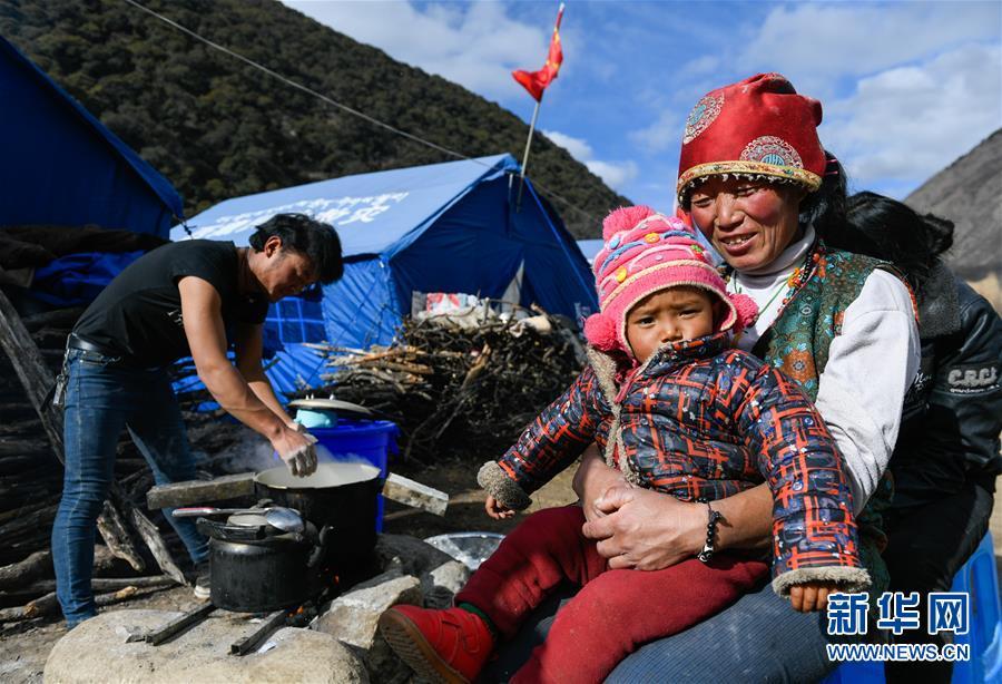 這是在距波羅鄉(xiāng)政府約6公里的一處臨時安置點內(nèi)拍攝的群眾(10月14日攝)。 新華社記者 劉東君 攝