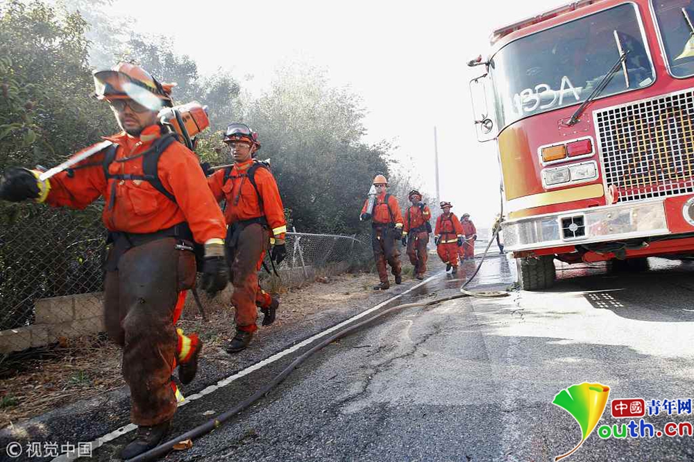 圖為文圖拉郡火場附近多輛消防車集結(jié)。