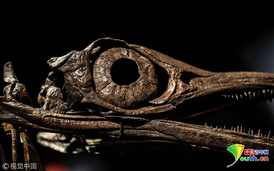 當(dāng)?shù)貢r(shí)間2018年11月19日,法國(guó)巴黎,在展出中的1.8億年前侏羅紀(jì)時(shí)期的恐龍骨架,將于11月20日在Drouot拍賣(mài)行拍賣(mài)。圖片來(lái)源:視覺(jué)中國(guó)