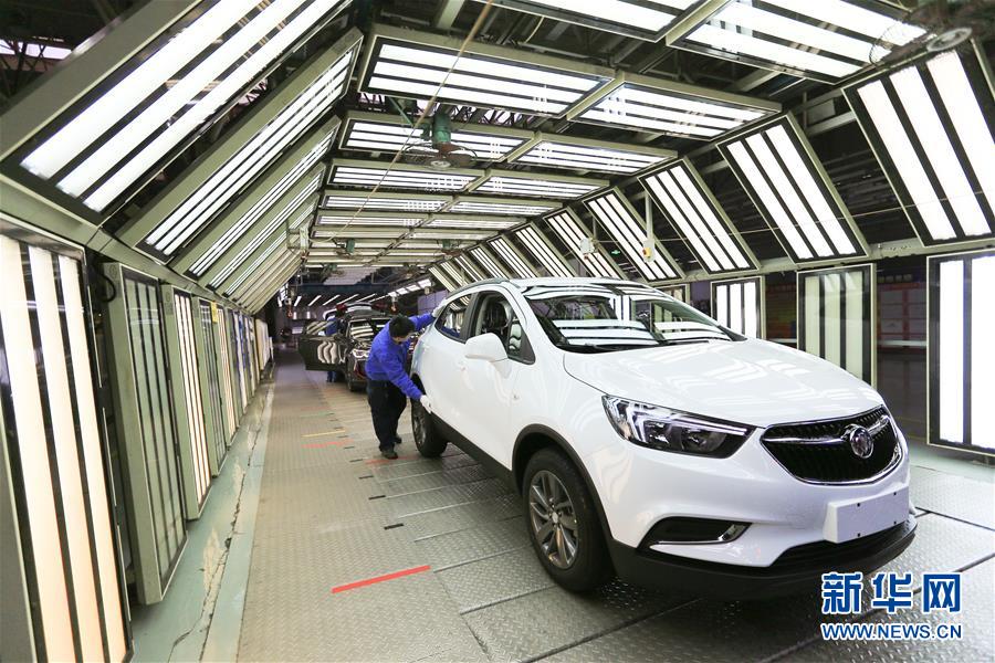 在上汽通用東岳汽車有限公司的總裝車間,工作人員對車輛進行檢查(11月15日攝)。新華社記者王南攝