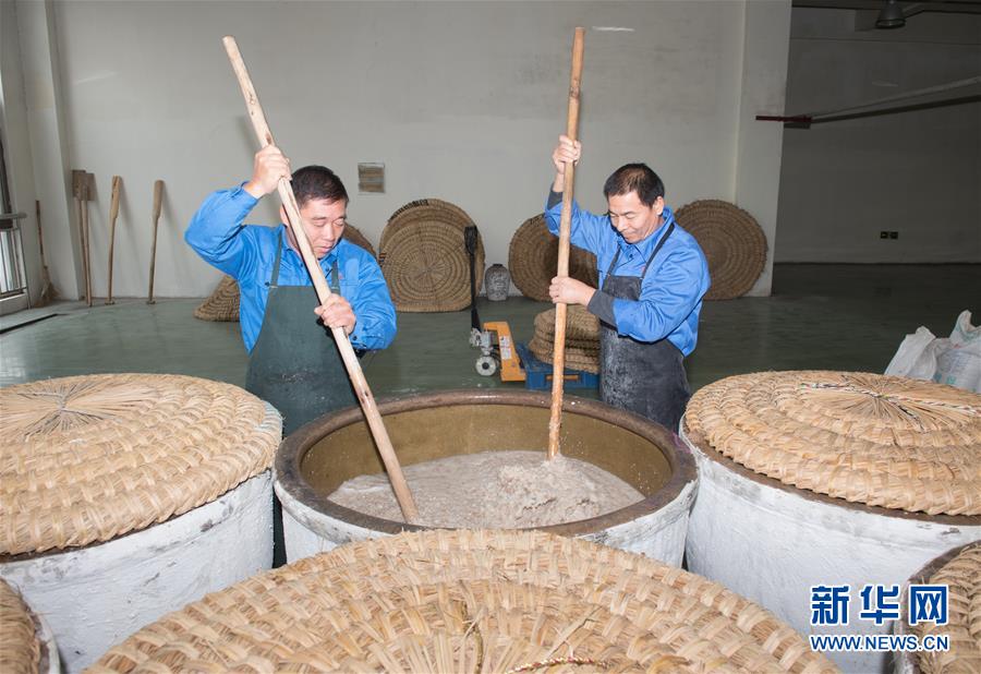 11月21日,工作人員在紹興女兒紅釀酒有限公司釀酒廠房用竹耙攪動糯米,使其與麥曲和酒母充分混合。 浙江紹興一帶有“生女釀好酒、婚嫁宴賓客”的習俗,所釀之酒稱“女兒紅”。在紹興市上虞區(qū)東關(guān)街道,一家釀酒廠仍保留著傳統(tǒng)的黃酒生產(chǎn)線,恪守著近20道釀造工序,延續(xù)著傳統(tǒng)黃酒的釀制技藝和生女必釀“女兒紅”的文化習俗。 黃酒是中國最古老的酒種之一,傳統(tǒng)黃酒僅在冬季取鑒湖水和糯米釀制,所得之酒澄澈馥郁。 新華社記者翁忻旸攝