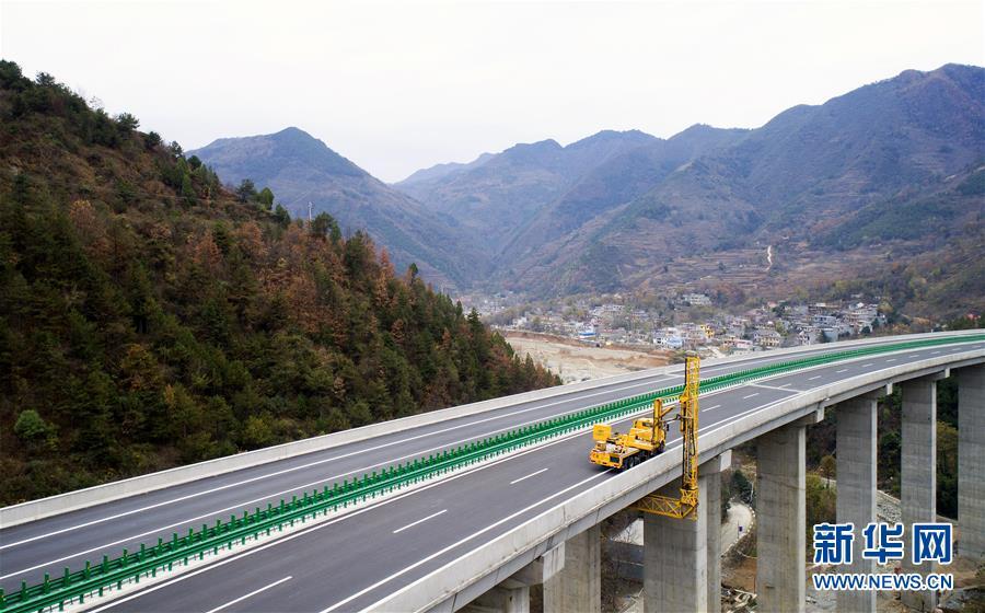 11月20日,在水陽(yáng)高速公路左家灣特大橋上,橋梁檢測(cè)車(chē)在進(jìn)行通車(chē)前的檢測(cè)作業(yè)(無(wú)人機(jī)拍攝)。 近日,記者從陜西省交通建設(shè)集團(tuán)公司了解到,陜西柞水至山陽(yáng)高速公路已全線貫通即將通車(chē)。據(jù)介紹,(柞)水(山)陽(yáng)高速公路全長(zhǎng)78.8公里,開(kāi)通后將實(shí)現(xiàn)包茂高速、福銀高速在陜南商洛地區(qū)的連接,開(kāi)辟出秦嶺南麓的一條橫向高速大通道,對(duì)完善陜西高速公路路網(wǎng)結(jié)構(gòu)、促進(jìn)陜南區(qū)域經(jīng)濟(jì)發(fā)展、加快山區(qū)群眾脫貧致富具有重要意義。 新華社記者劉瀟攝