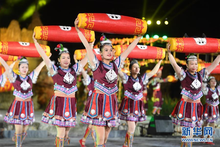 11月21日,演員表演舞蹈《天鼓神韻》。 當(dāng)日,廣西柳州市第一屆旅游產(chǎn)業(yè)發(fā)展大會(huì)暨2018第十八屆中國(guó)·融水苗族蘆笙斗馬節(jié)開幕式晚會(huì)在融水苗族自治縣舉行。 新華社記者 周華 攝