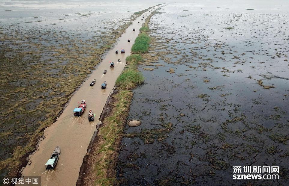 6月20日,鄱陽湖江西省鄱陽縣水域,漁船下湖捕撈作業(yè)。為期3個(gè)月的中國最大淡水湖鄱陽湖春季禁漁期于當(dāng)日12時(shí)結(jié)束。當(dāng)日,第二屆鄱陽湖國家濕地公園開漁節(jié)在此間舉行,吸引各地游客慕名前來。中新社記者 姜濤 攝