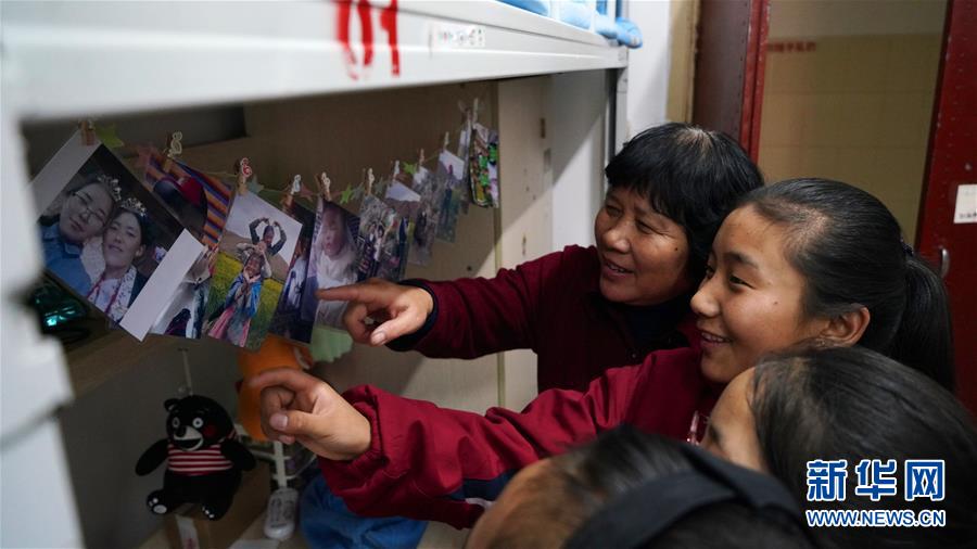 11月16日,南昌市第十七中學西藏班的學生通過照片給“愛心媽媽”劉和平(左一)介紹家中情況。新華社記者 胡晨歡 攝