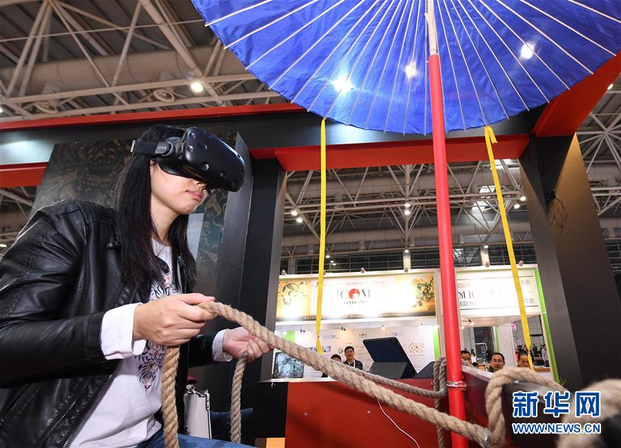 11月23日,觀眾正在操作3D虛擬文物的互動(dòng)展示。新華社記者李賀攝