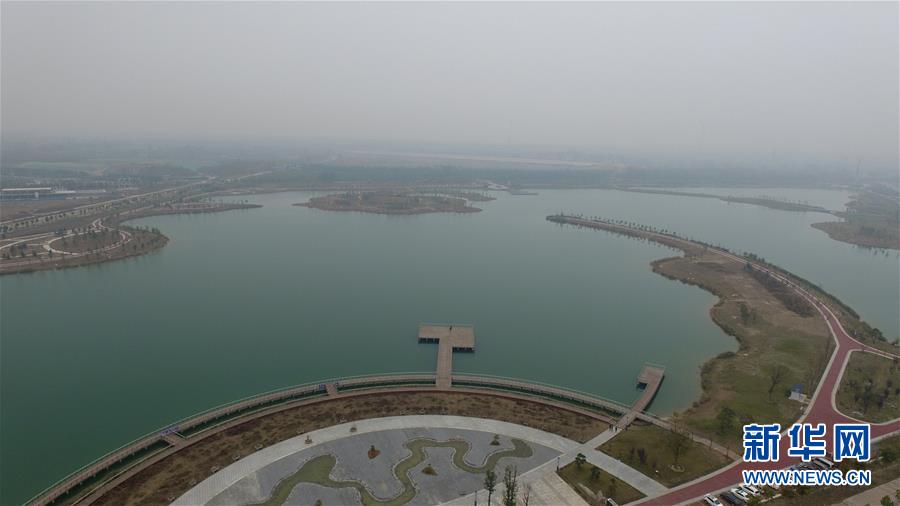 這是11月15日無人機(jī)拍攝的河南蘭考縣新開挖的湖泊。新華社記者馮大鵬攝