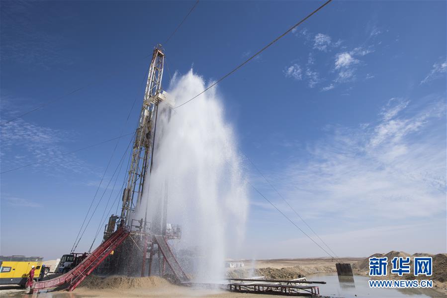 11月21日,在埃及明亞省,地下水從水管里噴涌而出。 2017年,中國中曼石油公司與阿聯(lián)酋海灣集團簽訂合同,為該集團在埃及沙漠中的大型農(nóng)業(yè)項目鉆探300口水井。根據(jù)合同,中曼石油將先期完成30口井的試鉆探,剩余水井將以每月7口的速度交付。目前有超過200名工人在鉆井現(xiàn)場作業(yè),大部分是埃及本地人。 新華社記者李碧念攝
