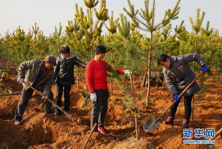 11月25日,遷安市蔡園鎮(zhèn)劉莊子村的村民在村北鐵礦廢料場栽植松樹。 新華社記者 楊世堯攝