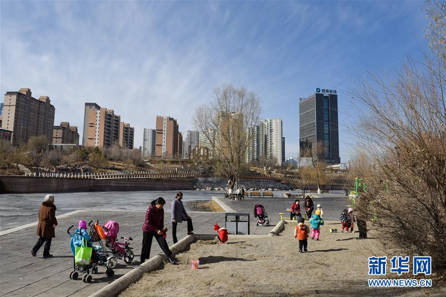 11月28日,市民帶著孩子在西寧市海湖新區(qū)的公園內(nèi)游玩。