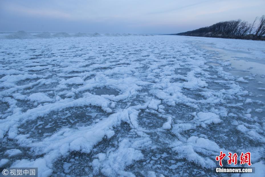 11月24日下午,攝影師在進入冬季黑龍江東南部中俄界湖興凱湖看到,浩瀚千里的湖面不再波濤洶涌,小興凱湖蔚藍猶如平鏡,大興凱湖銀白無限。走到冰封的湖面近處觀看,封凍的大湖湖面猶如浪花被凝固,千姿百態(tài)。據岸邊漁民介紹,今年大湖屬于“武封”,是由于氣溫突然下降造成的,這也是少有的現象,和往年的“文封”形成的大冰塊區(qū)別很大。孫長山 攝 圖片來源:視覺中國